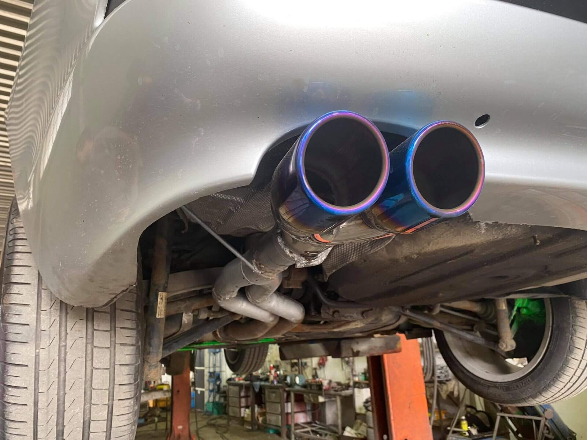 UPDATE 2025: říznutí zadního tlumiče a navaření té modré koncovky byl absolutní nesmysl a už bych to na auto nikdy nedal.