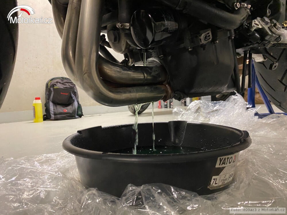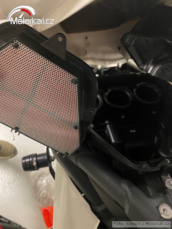 Vyčištění a odvzdušnění chladící systému. Nové svíčky. Výměna brzdící kapaliny. Výměna vzduchové filtru KN za origo HifloFiltro. Vyčištění stojánku.