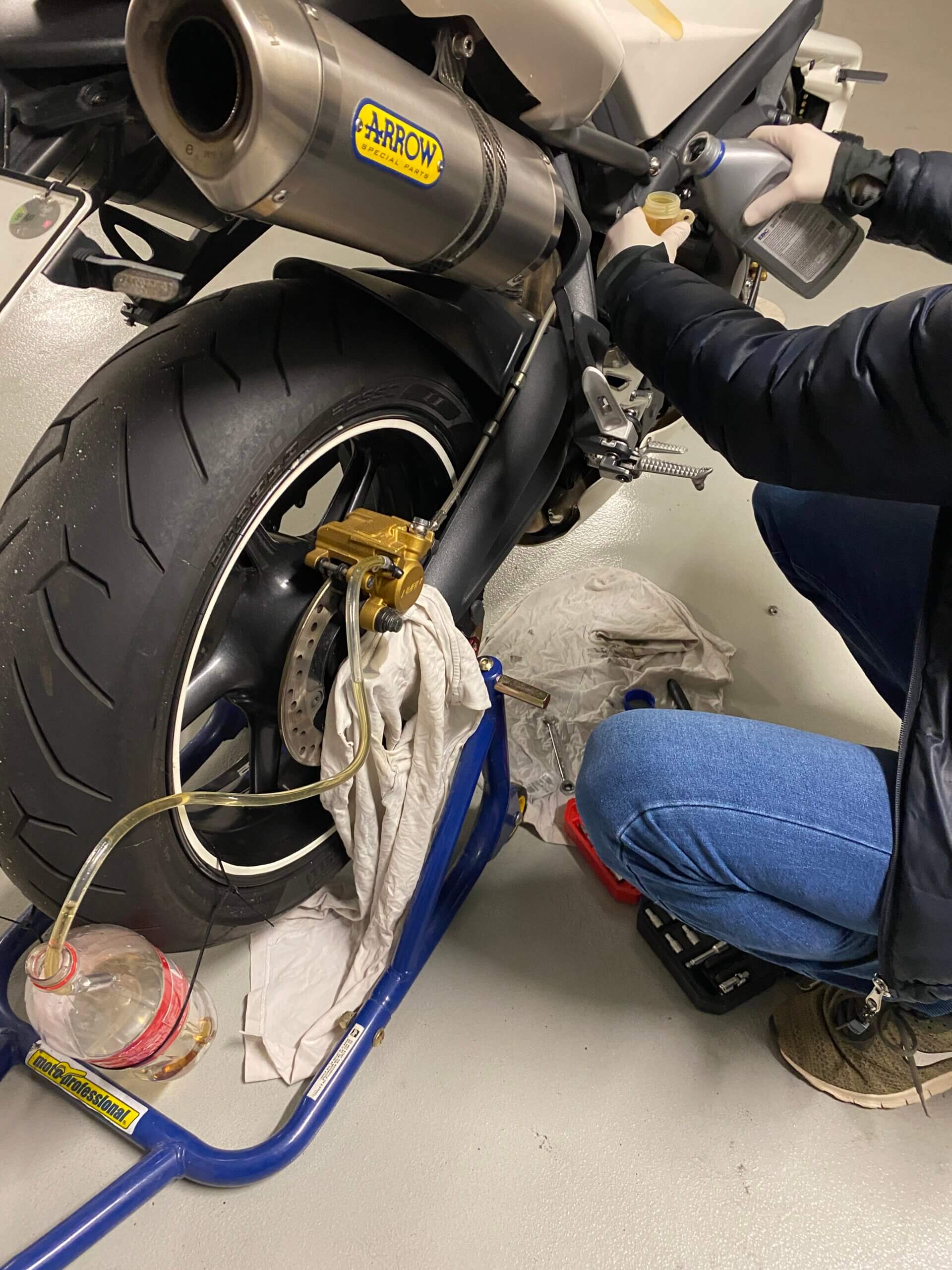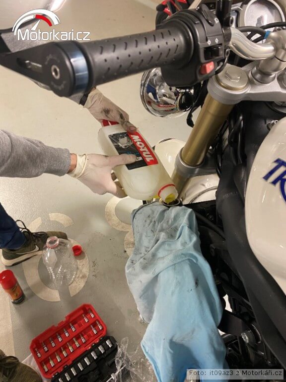 V Motoman Brno jsem potřeboval před sezonou vyměnit olej ve vidlicích, vyměnit přední brzdovou kapalinu, provést kontrolu ventilů a rozvodového řetězu a rovnou provést veškeré nutné práce k blížící se intervalu 40 000 km. Sezóna může začít.