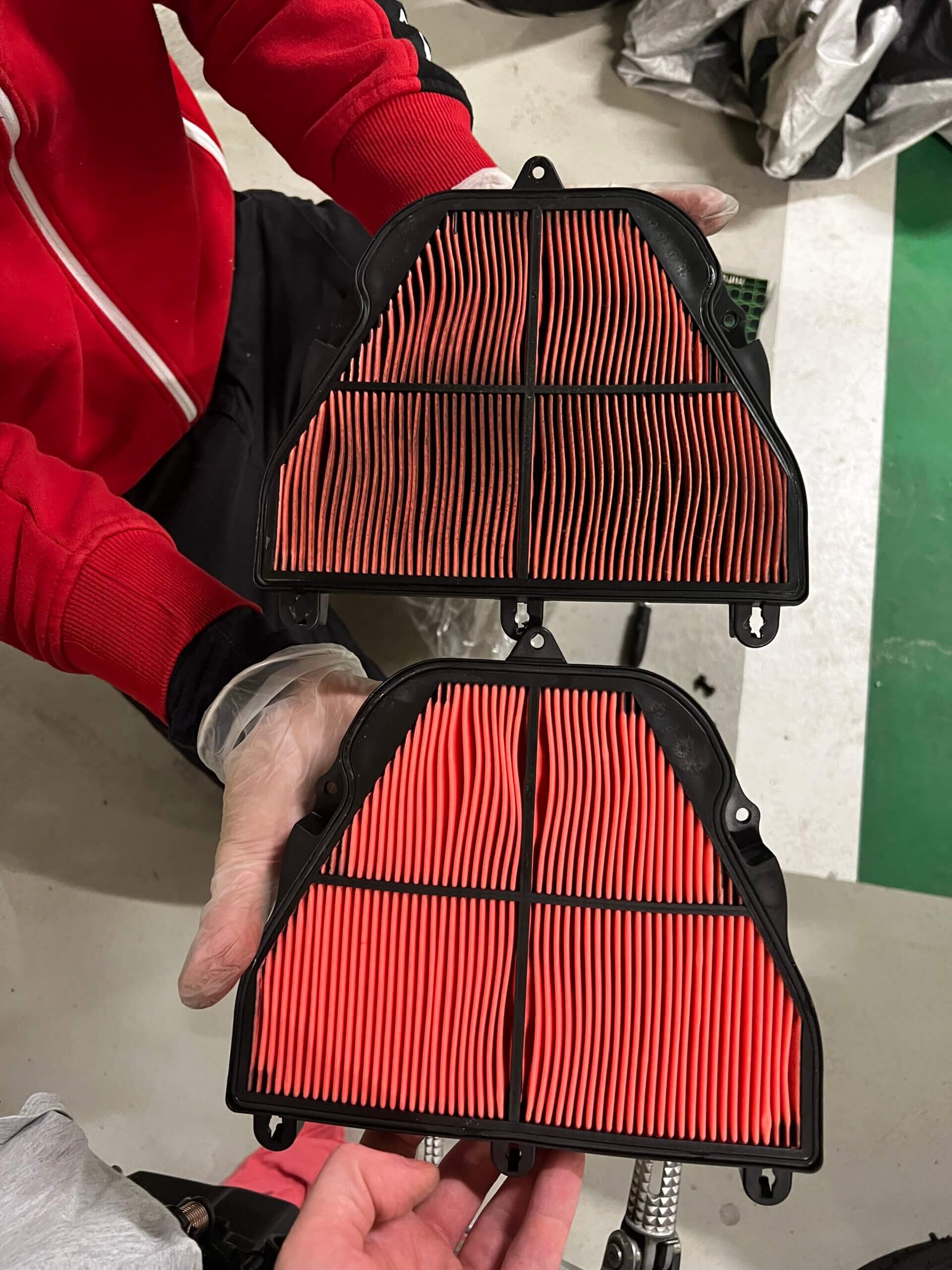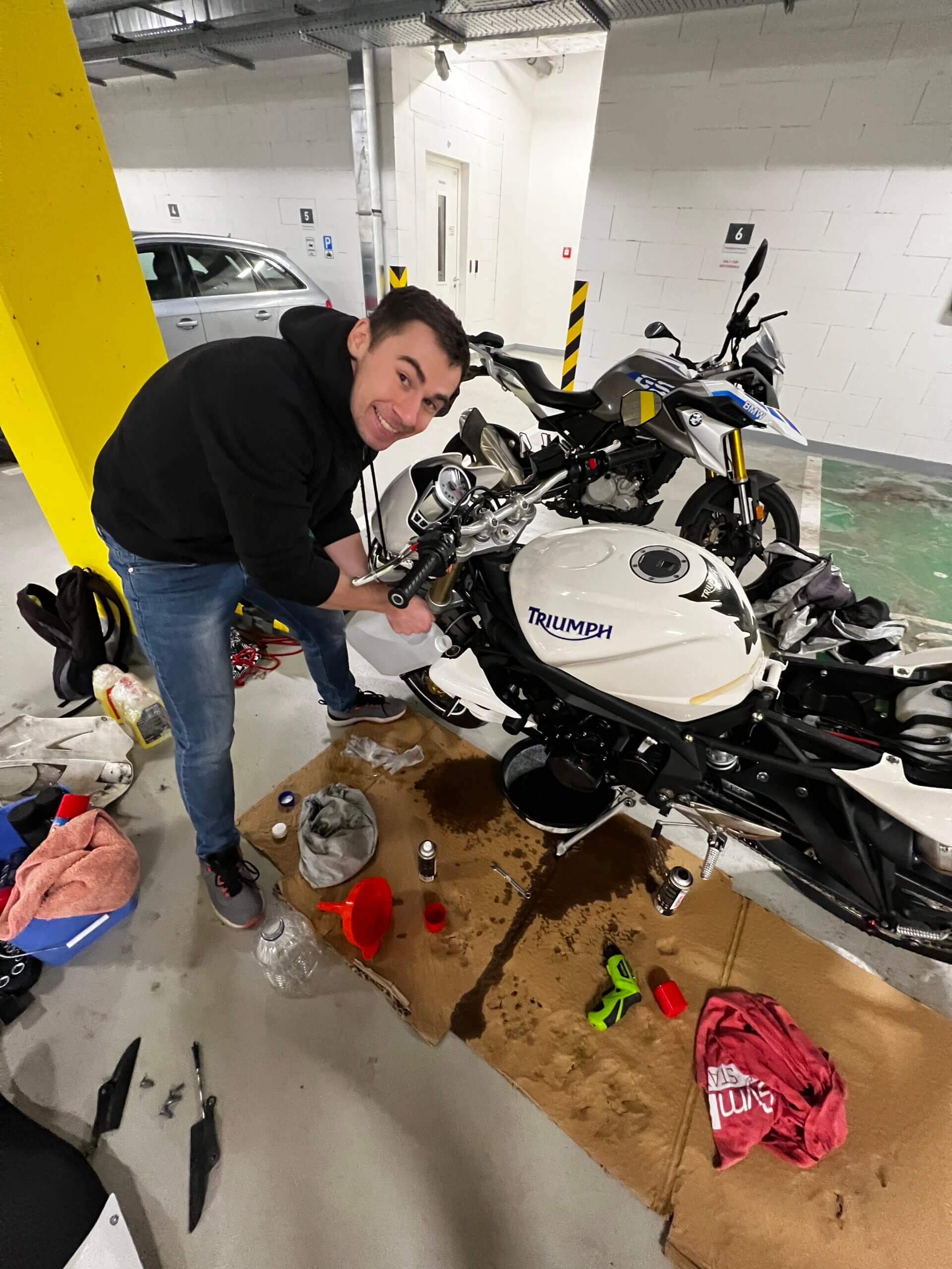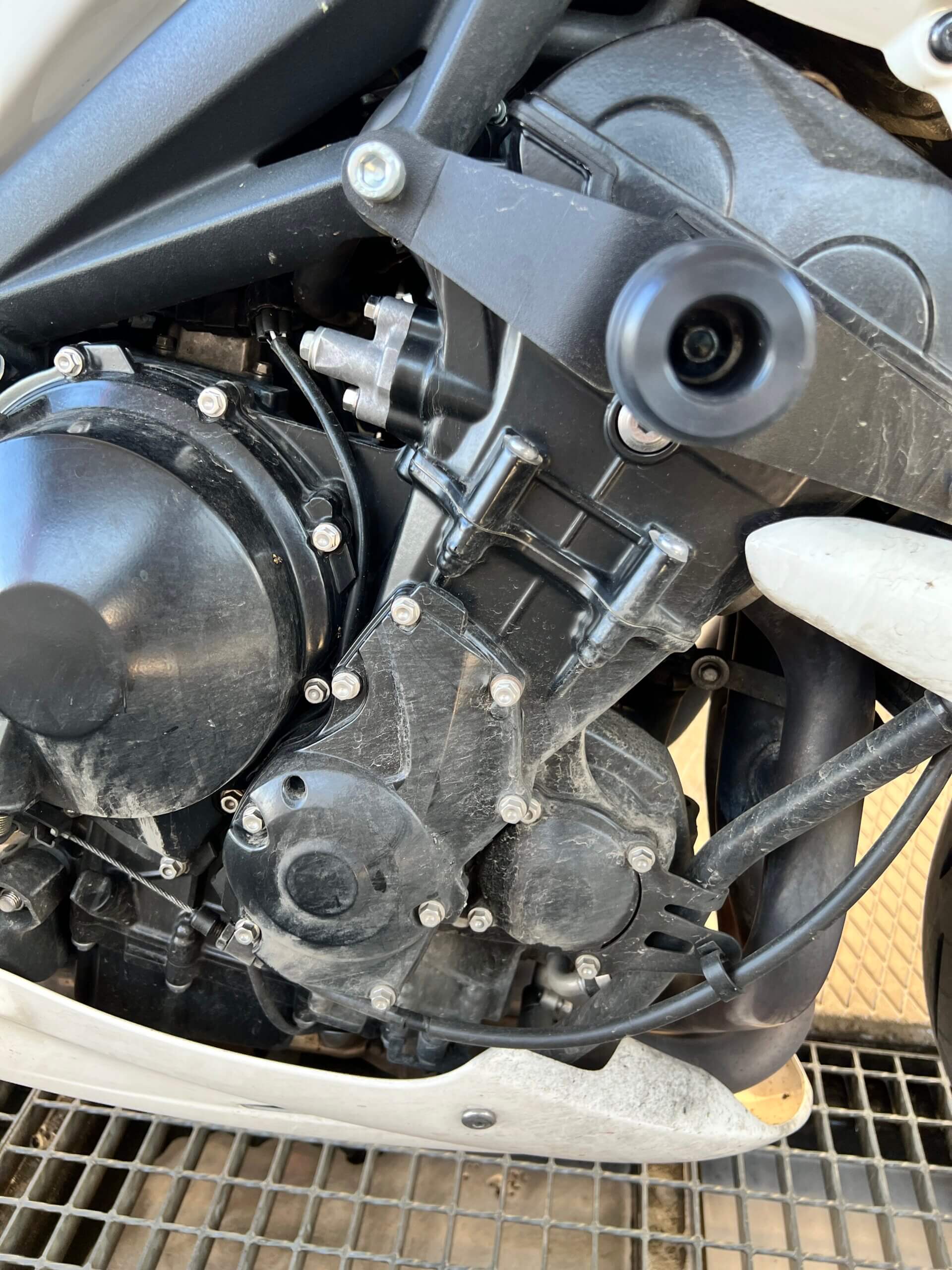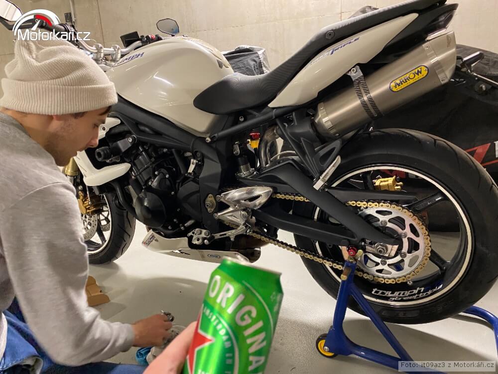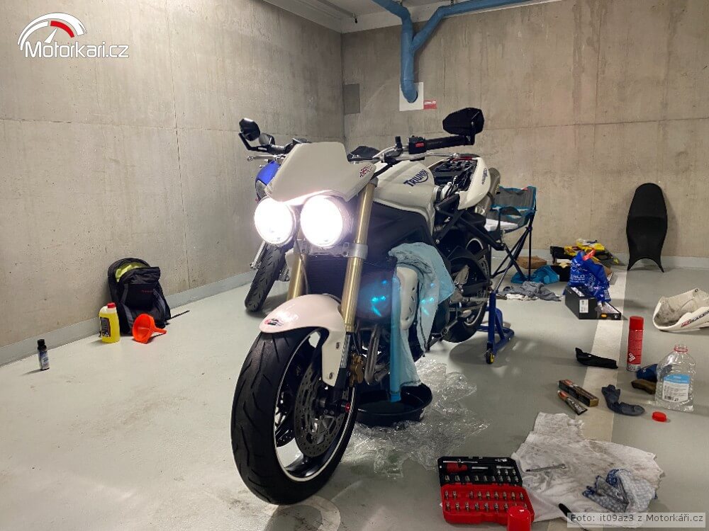 Motorku jsem zazimoval a domluv se s kamarádem Danem, že uděláme běžný servis. Dan je moto blázen a na okruh mě navedl on. Taky to je člověk, který má rád všechno v topu. Vyměnili jsme vzduchový filtr, přední brzdové destičky, motorový olej, 2x propláchli chladící systém. Později jsem také vyčistil výfukové svody. O Streeta je potřeba se starat.