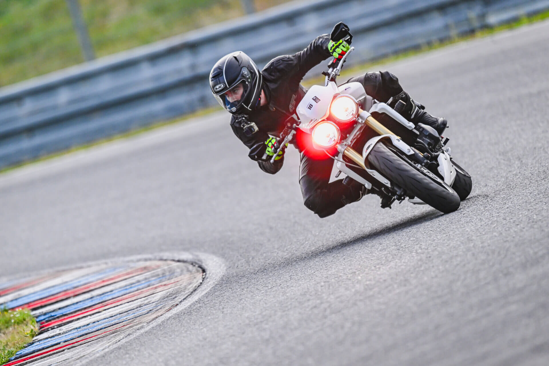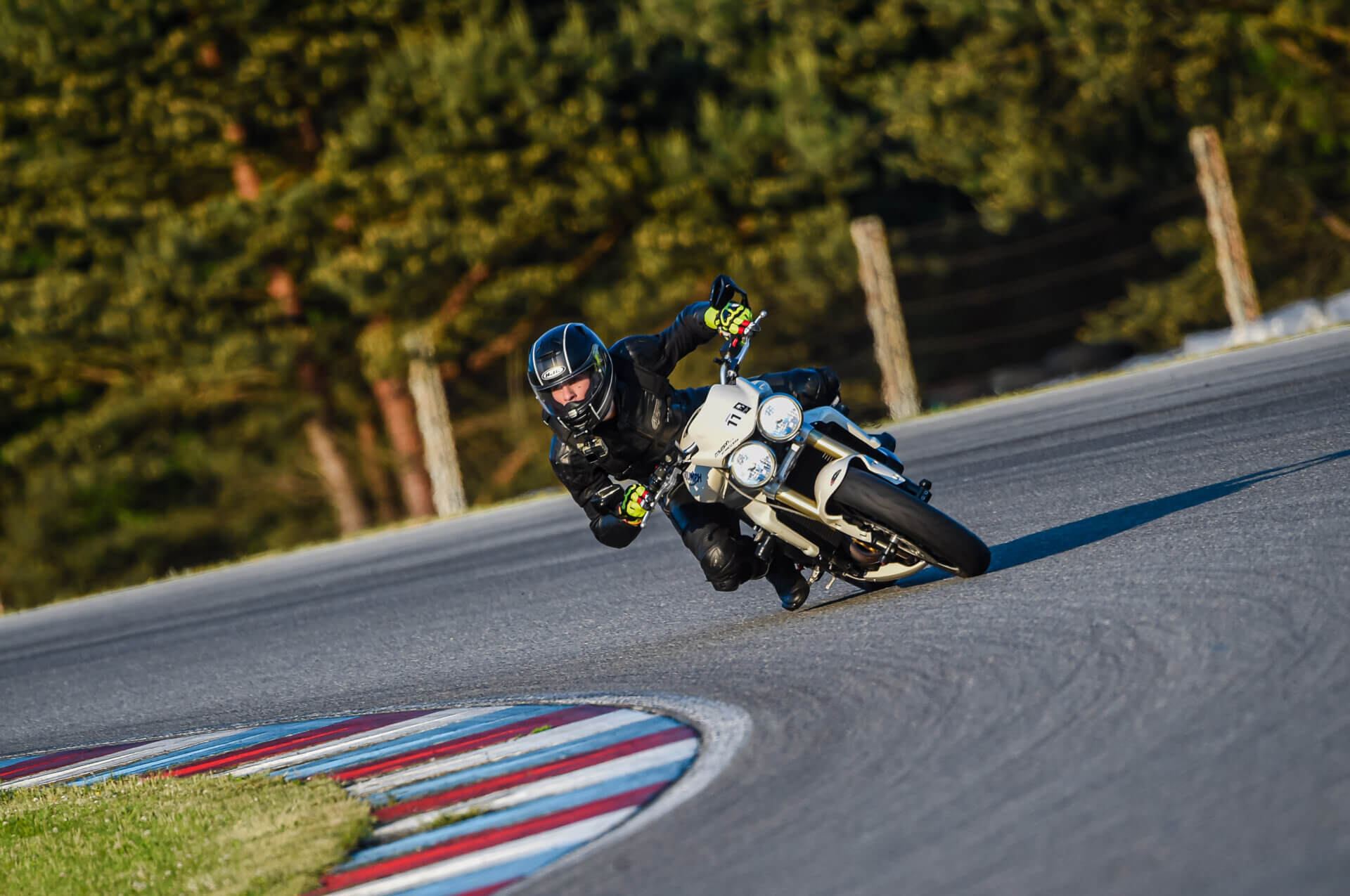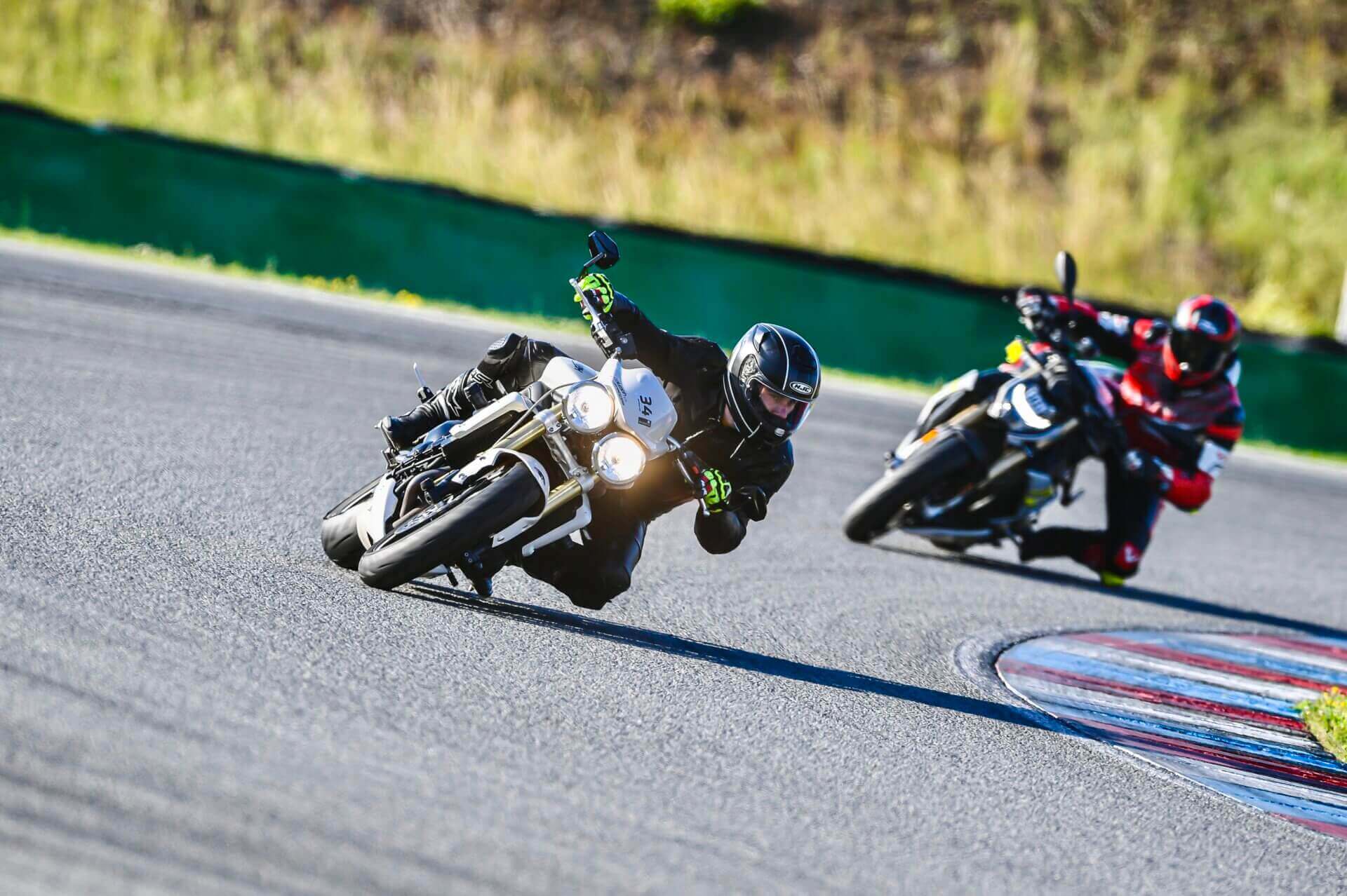 Přihlásil jsem se na Motoškolu Advanced, abych opět oprášil svůj moto skill. Po roce pauzy musím upřímně přiznat, že jsem zapomněl jak se na motorce jezdí. Nicméně po třech dvacetiminutovkách jsem se dokázal alespoň trošku rozhýbat. Celou motoškolu jsme se soustředil jen na úplně základy. Ostré lokty, hlavu k zrcátkům, vysednout se zadkem, dívat se do zatáčky. Na nějaké honění časů jsem vůbec neměl myšlenky. Ke konci motoškoly mohu říct, že jsem se celkem slušně rozhýbal a bylo to fajn si zase zajezdit