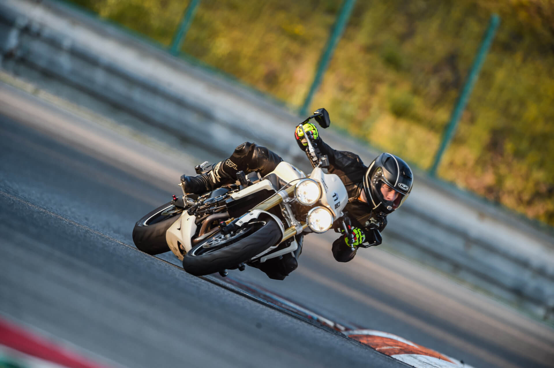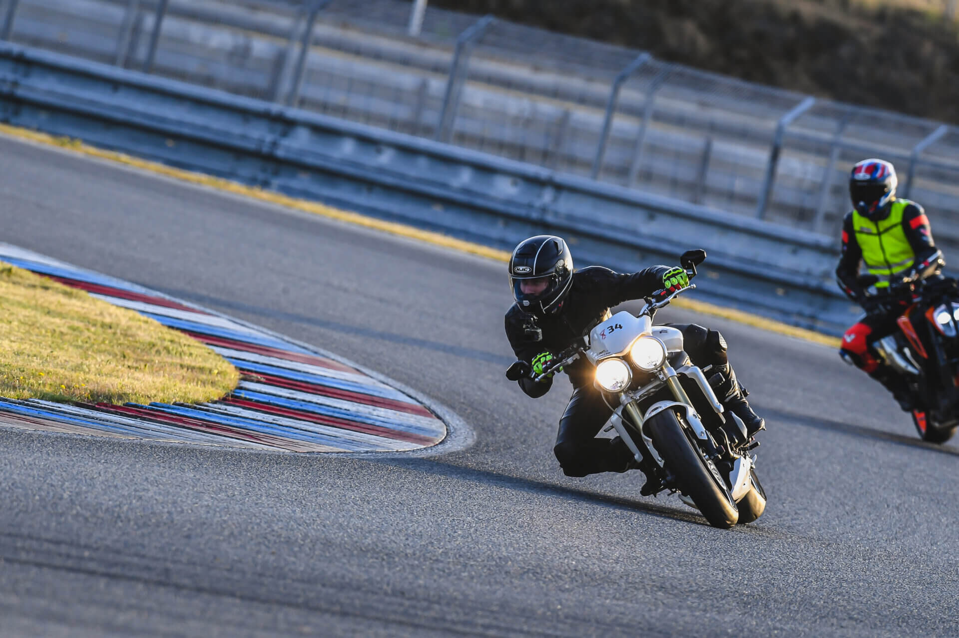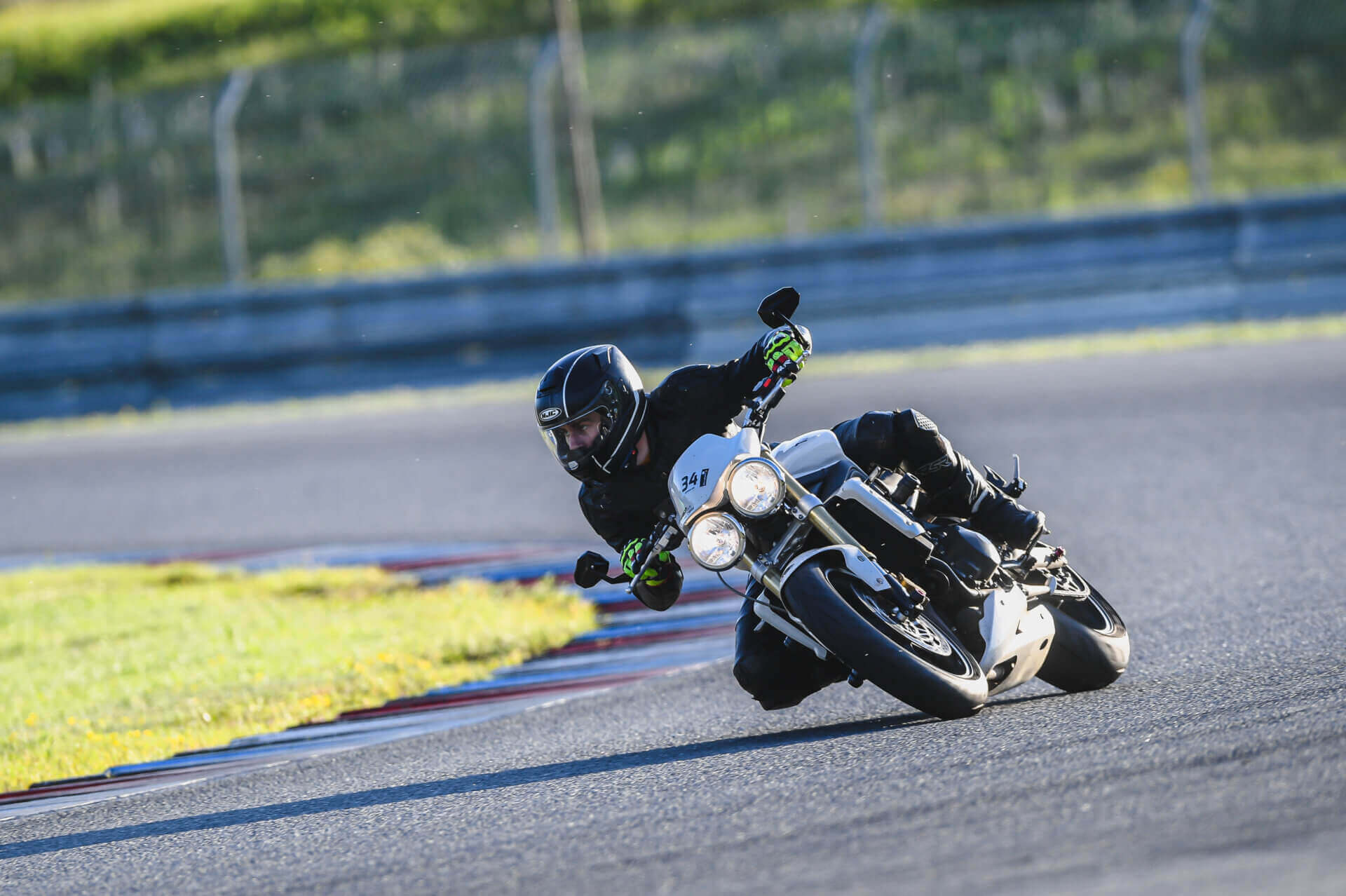 Přihlásil jsem se na Motoškolu Advanced, abych opět oprášil svůj moto skill. Po roce pauzy musím upřímně přiznat, že jsem zapomněl jak se na motorce jezdí. Nicméně po třech dvacetiminutovkách jsem se dokázal alespoň trošku rozhýbat. Celou motoškolu jsme se soustředil jen na úplně základy. Ostré lokty, hlavu k zrcátkům, vysednout se zadkem, dívat se do zatáčky. Na nějaké honění časů jsem vůbec neměl myšlenky. Ke konci motoškoly mohu říct, že jsem se celkem slušně rozhýbal a bylo to fajn si zase zajezdit