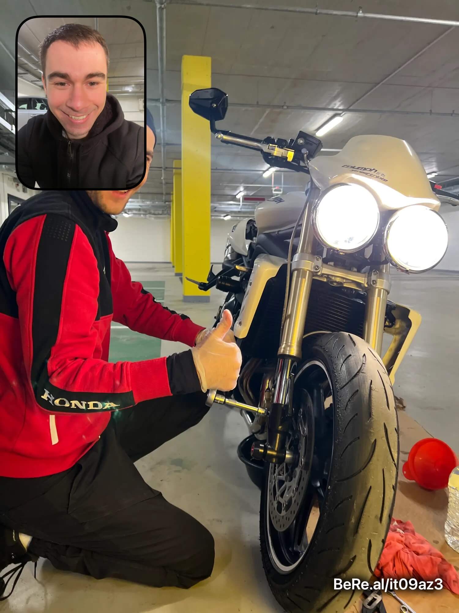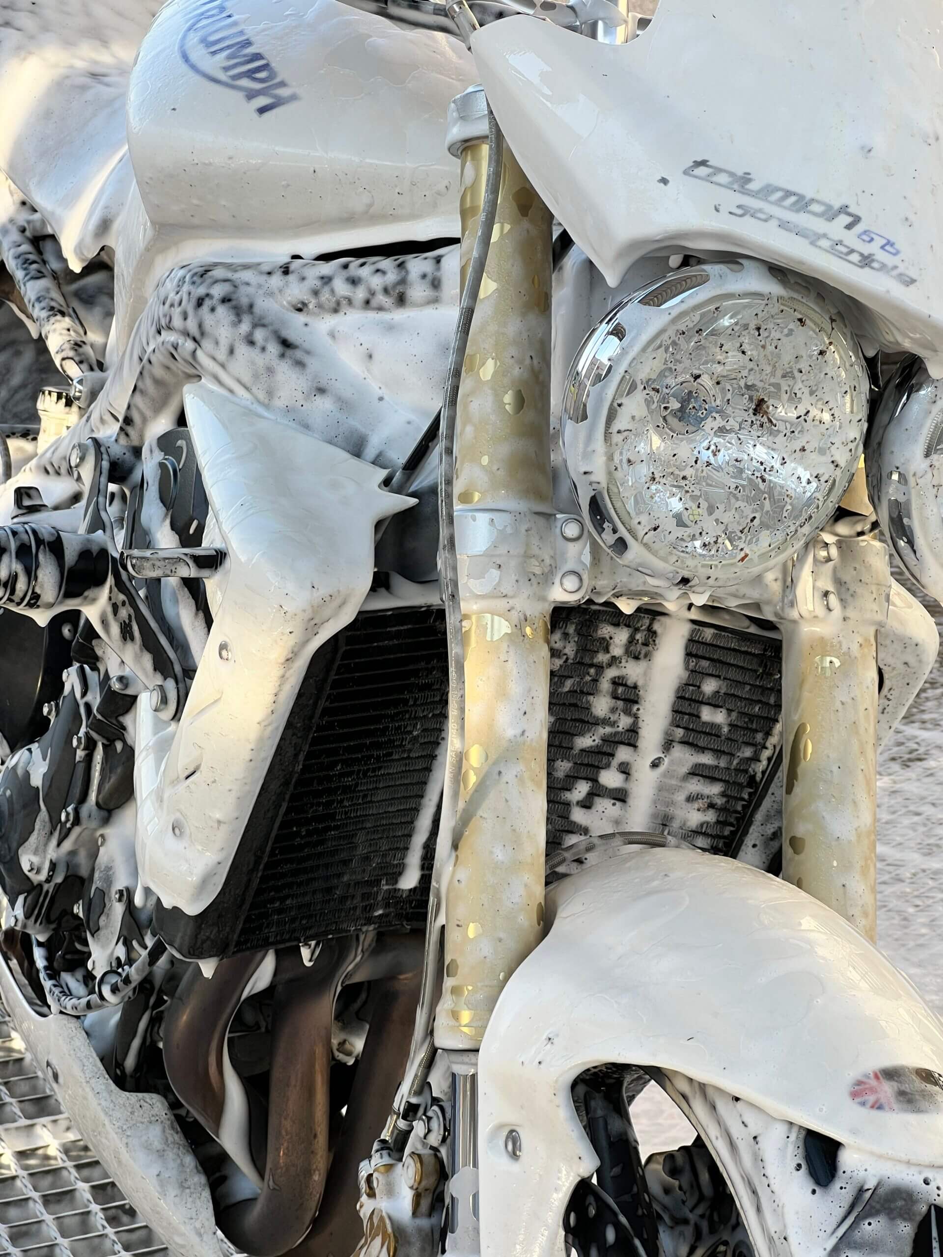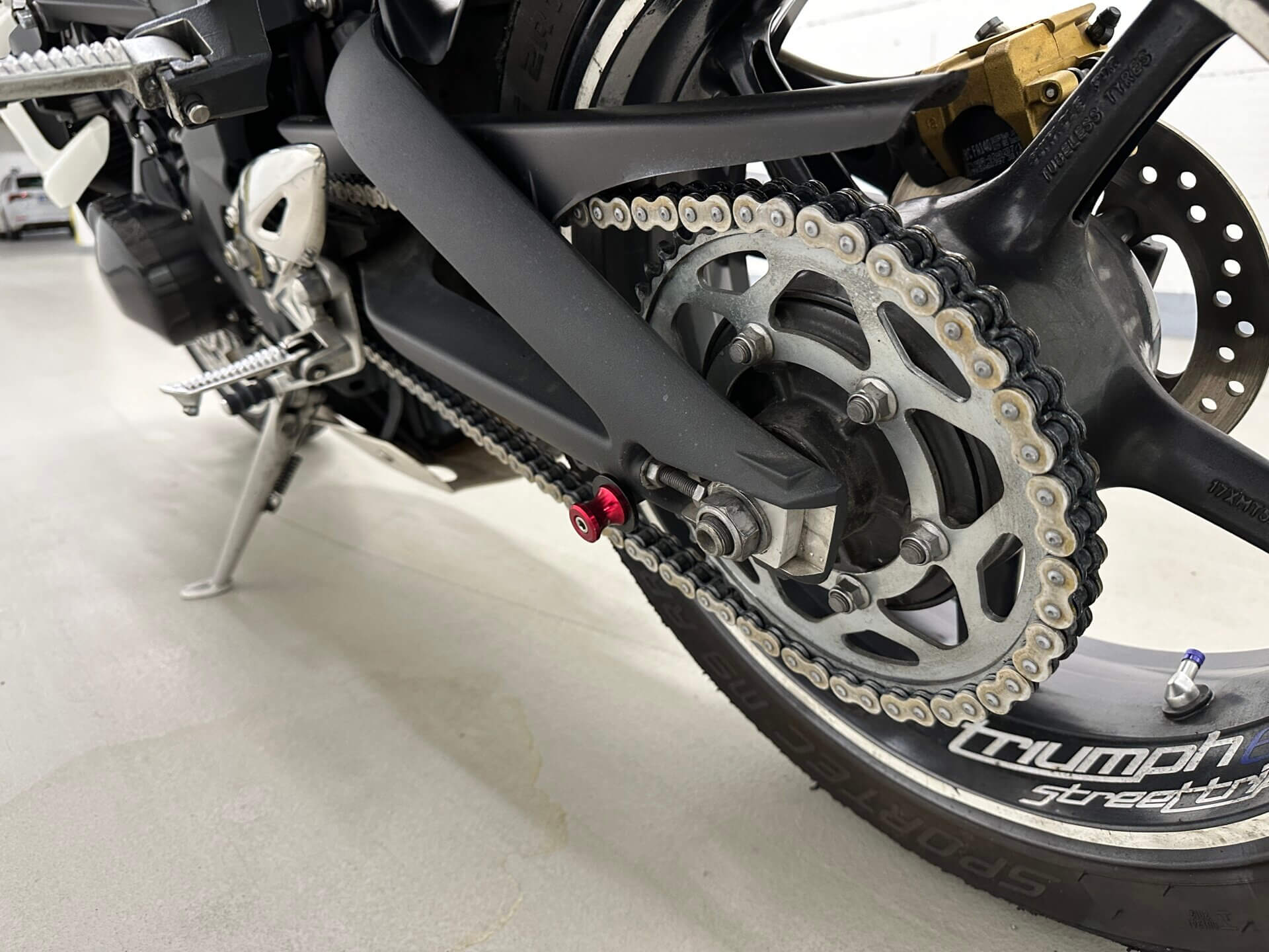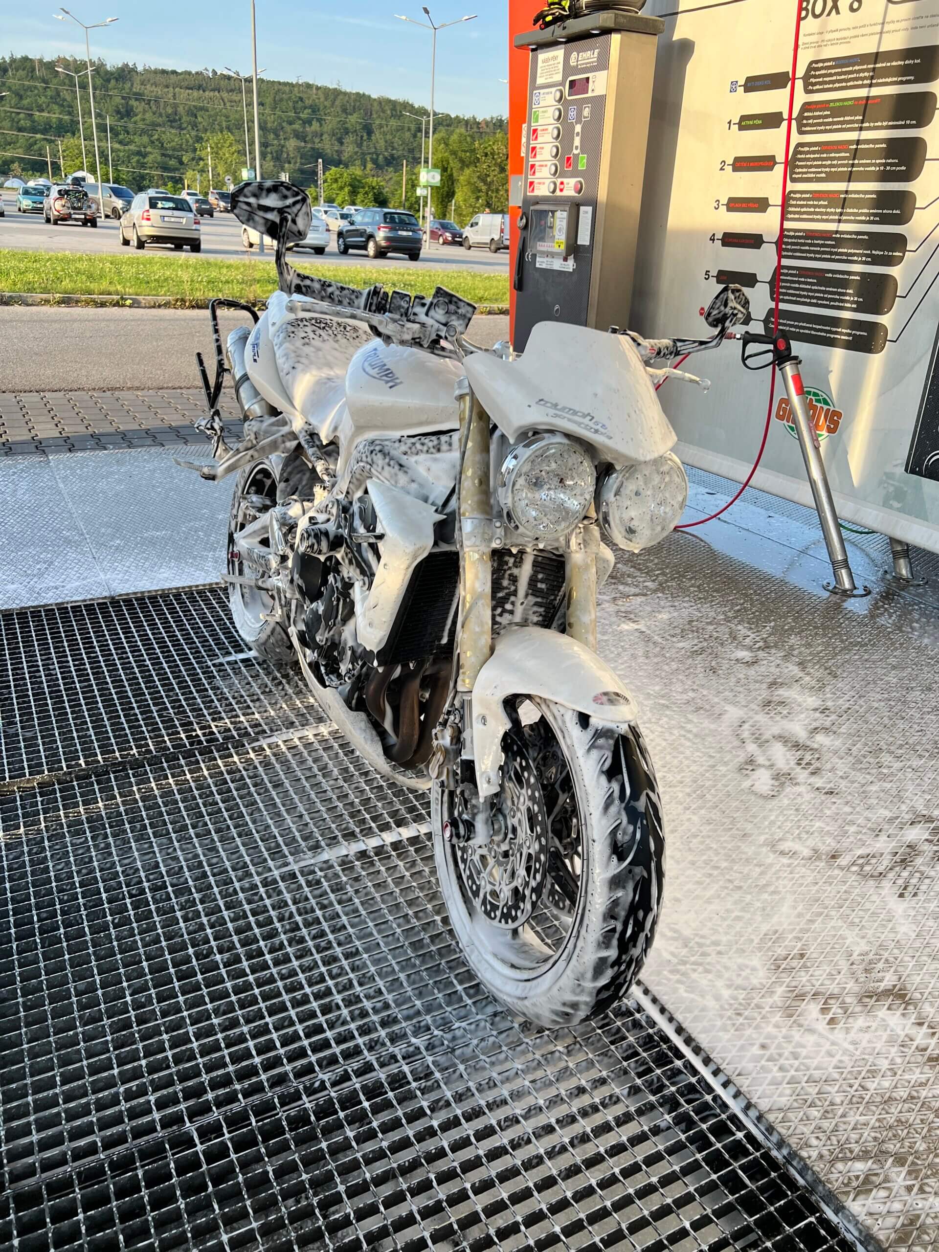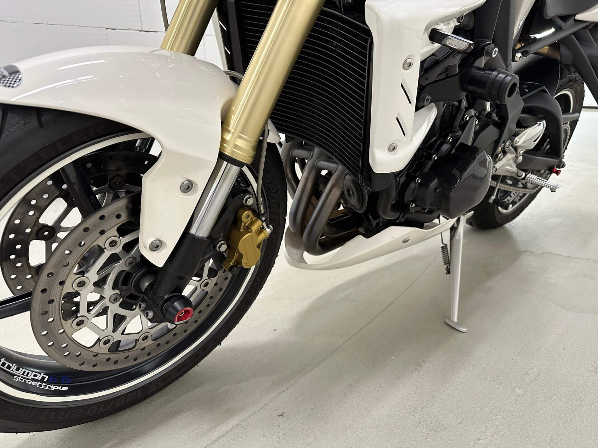 Nicméně protože jsem padal na okruhu a v servisu ti určitě nezkontrolují na úhel přesně celou přední část motorky, tlumiče, krk řízení a tak dále, vše jsem nahlásil a poslal motorku do Triumph Brno, kde tlumiče a celý předek motorky zkontrolovali a nenašli žádné poškození. Za celou událost jsem vlastně docela rád, protože mám papír, že motorce nic není – ne kvůli toho incidentu v garáži, ale po tom pádu z okruhu. Aneb když máš možnost motorku nechat zkontrolovat, tak proč bych to zadarmo neudělal?