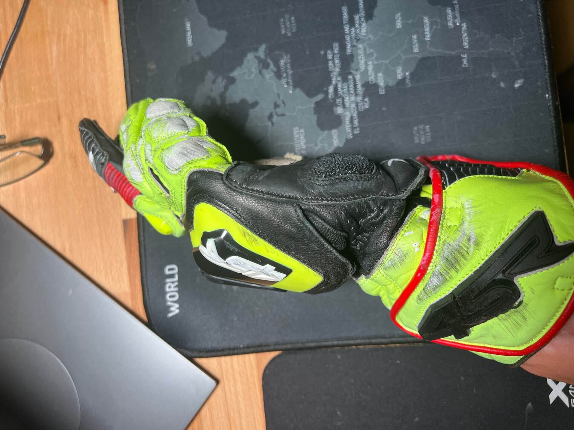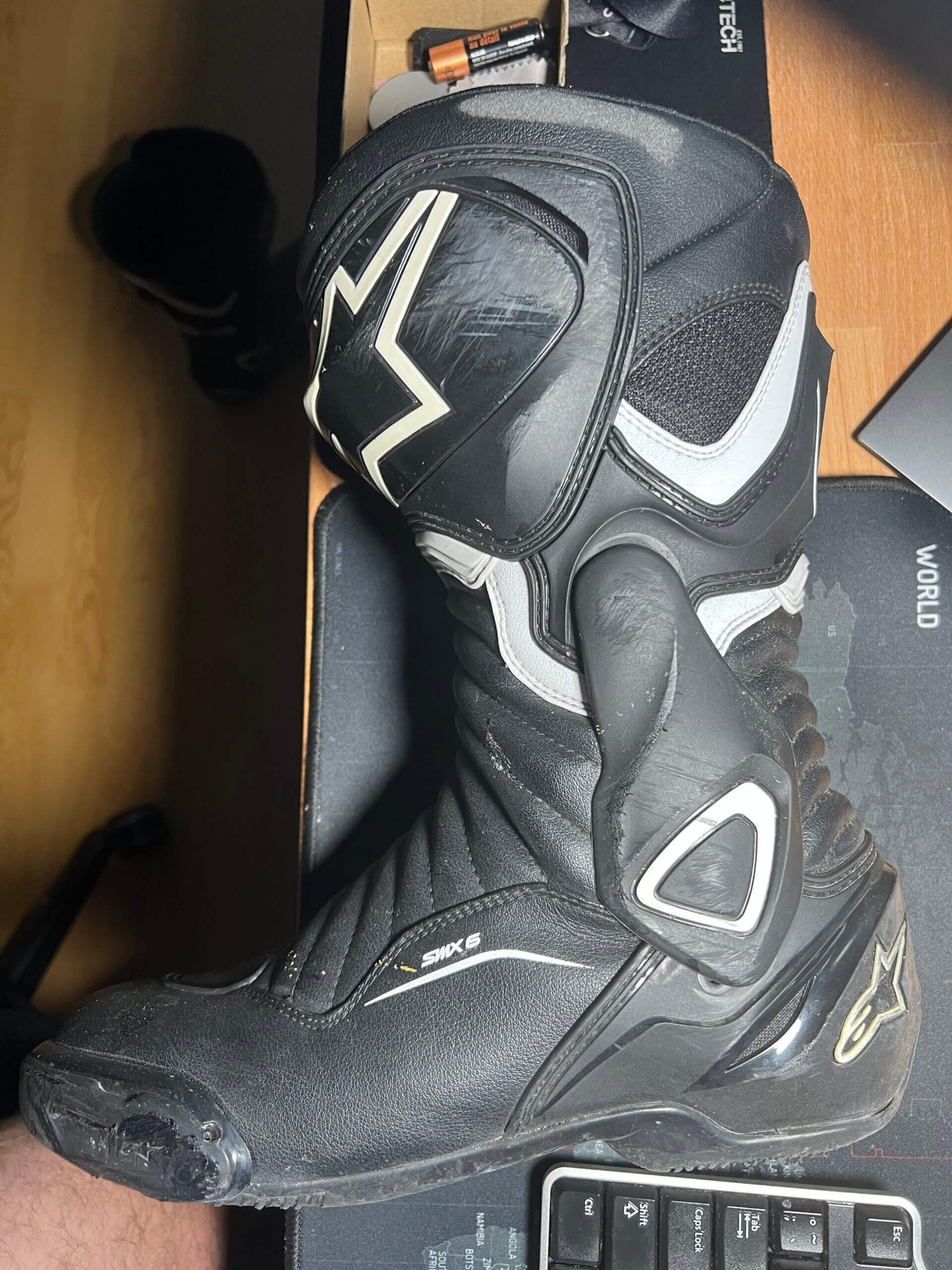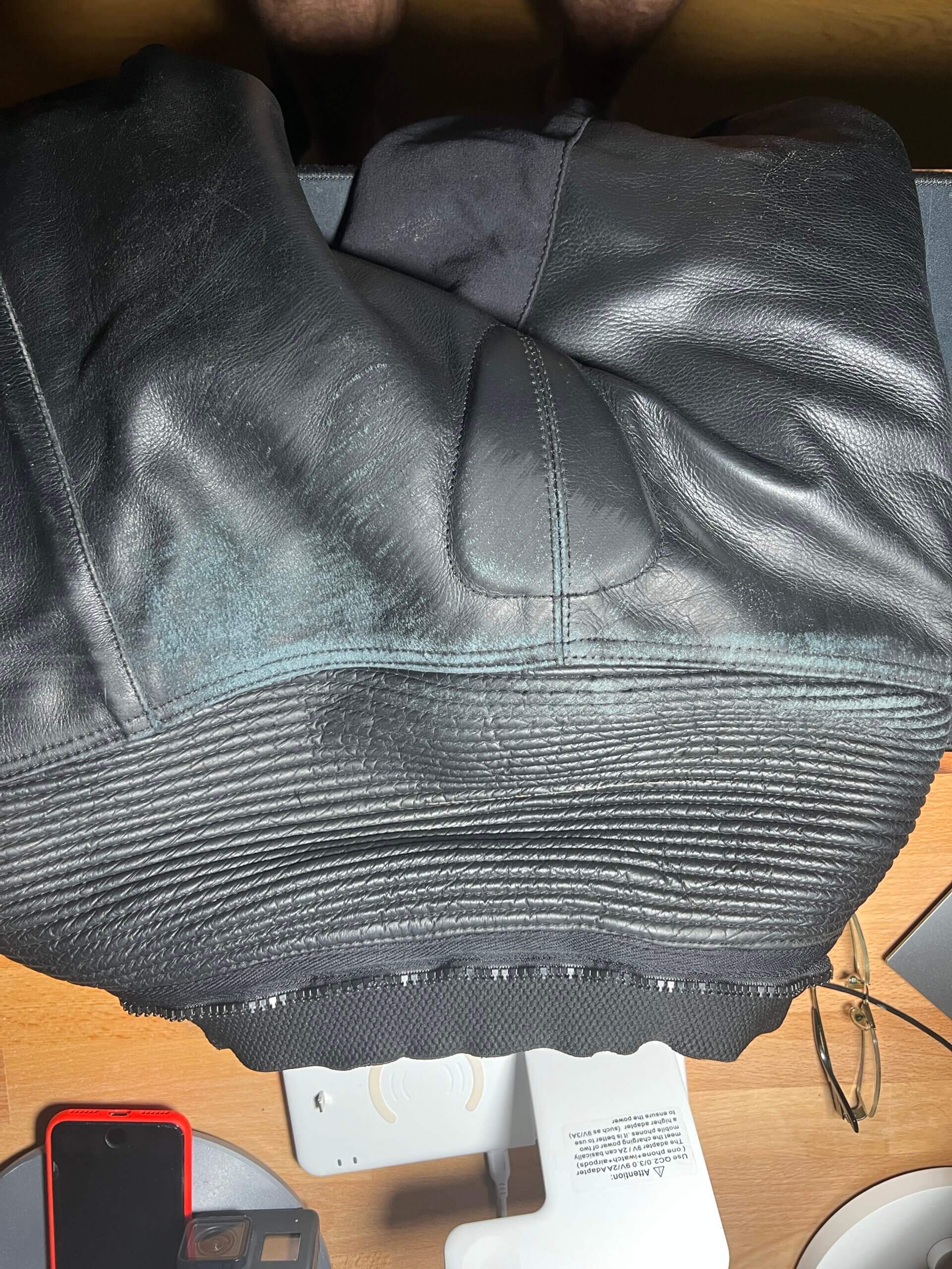 Po pádu na motorce jsem vyměnil padací protektor, zrcátko, páčku spojky, kryt alternátoru, řadičku. Kombinéza tady nedopadla zle, nějaké šrámy má, ale není roztrhaná, takže v ní budu dále jezdit.